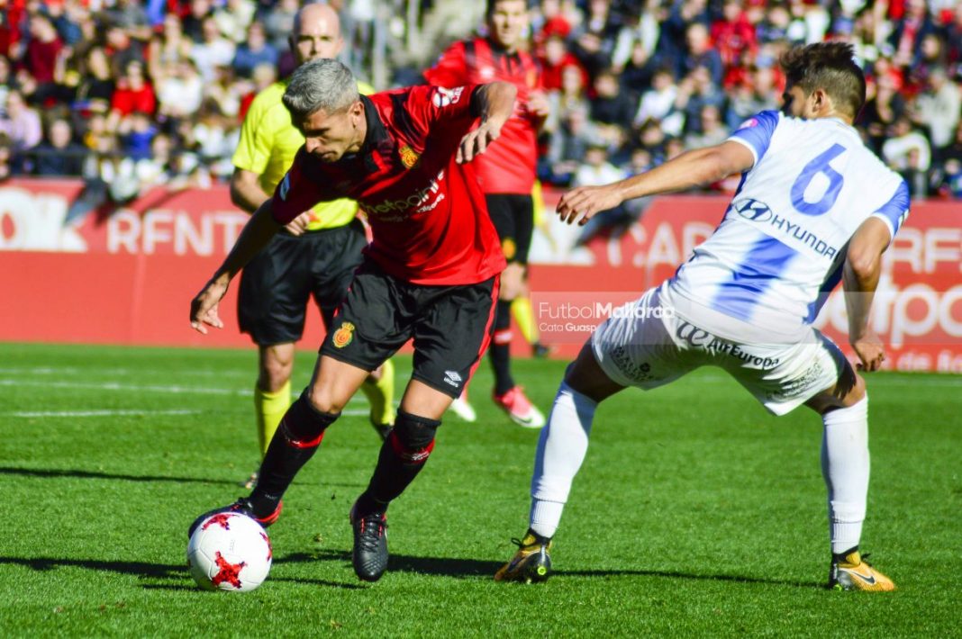 La intensidad y las expectativas previas al partido acabaron en sintonía con el mismo. El estadio fue una olla a presión desde el primer instante de juego. Ambos equipos desplegaron un fútbol impreciso y poco vistoso basado en posesiones y presión alta, fruto de un manojo de nervios incalculable sobre el verde. El Mallorca fue el primero que gozó de las primeras ocasiones claras del partido. Vicente Moreno hizo debutar a Aridai como titular por la banda, con Bustos en la otra, y el resultado no fue malo del todo. Los centros llegaron pero Álex López y Cedric no estuvieron atinados de cara a gol. El Baleares salió al campo bien replegado y la defensa de los de Melgarejo cuajó una gran primera mitad, con un Vallori imperial. El primer gol del partido lo consiguieron los visitantes. Biel Guasp puso un centro que no encontró ni rematador ni despeje, pero si portería. Sin querer, y con error de Pedraza y Reina, el Baleares se adelantó en el marcador y se fue al descanso con el 0-1 a favor.