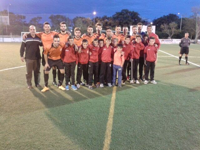 El primer equipo del Playas de Calviá, rindió ayer homenaje al joven jugador del club Samuel Guerra. El jovencísimo centrocampista del Alevín del Club, ha sufrido una grave lesión que le tendrá apartado de los terrenos de juego lo que resta de temporada. El futuro crack, recibió de manos del presidente del Club Jaume Bisquerra una camiseta firmada por todos los integrantes del primer equipo y realizó el saque de honor, demostrando su gran toque incluso con muletas.