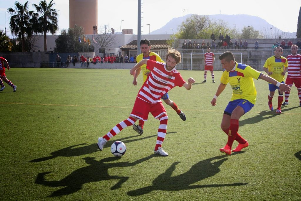 Al començament del partit la defensa local no treia la pilota correctament i l’aprofitava el visitant Rodriguez (7′) i posava el 0-1. Després del gol els atlètics tengueren vàries ocasions de gol, fins i tot l’àrbitre anul·lava un gol a Ginard per fora de joc. Pocs minuts més tard Solier assistia a Ginard i empatava el partit 1-1.