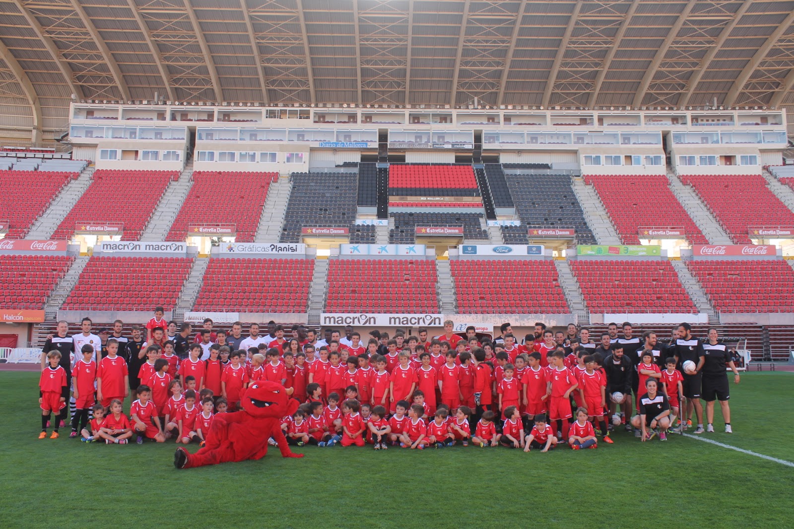 Los jugadores del RCD Mallorca saludan a los niños participantes del Campus de Semana Santa / Foto: RCD Mallorca |