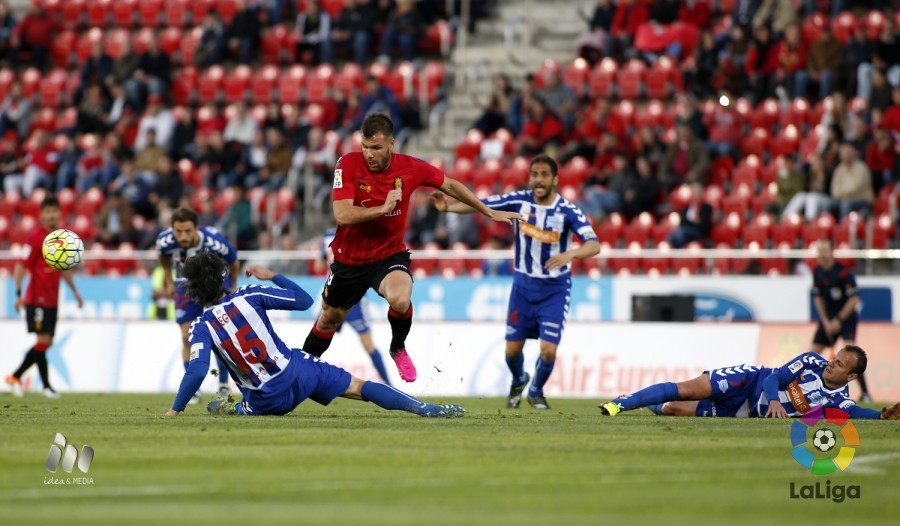 Mallorca y Alavés han empatado a cero en el partido correspondiente a la jornada 38 de la liga Adelante. Un encuentro en el que no ha habido ocasiones de gol, el árbitro ha sido el protagonista, expulsando incluso a Joan Oriol en el 93. El reparto de puntos no ayuda, por una lado, a un Mallorca que se pone a dos del descenso a falta de lo que haga la Ponferradina. Y el Alavés, por su parte, se mantiene segundo a un punto del Leganés. Ha perdido la oportunidad de ponerse líder y presionar a los madrileños, que juegan mañana.