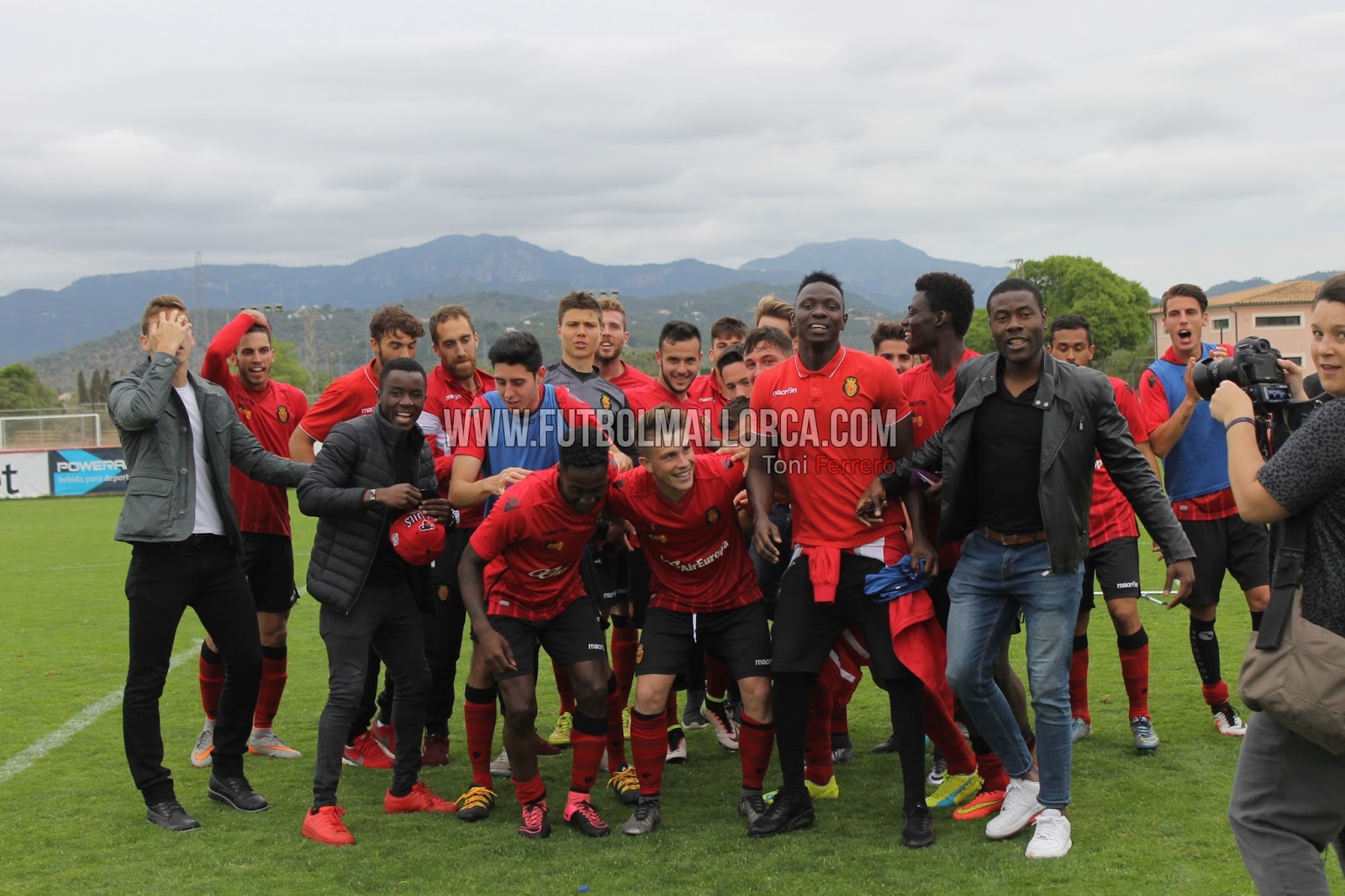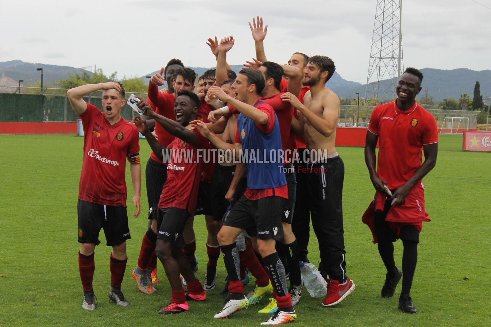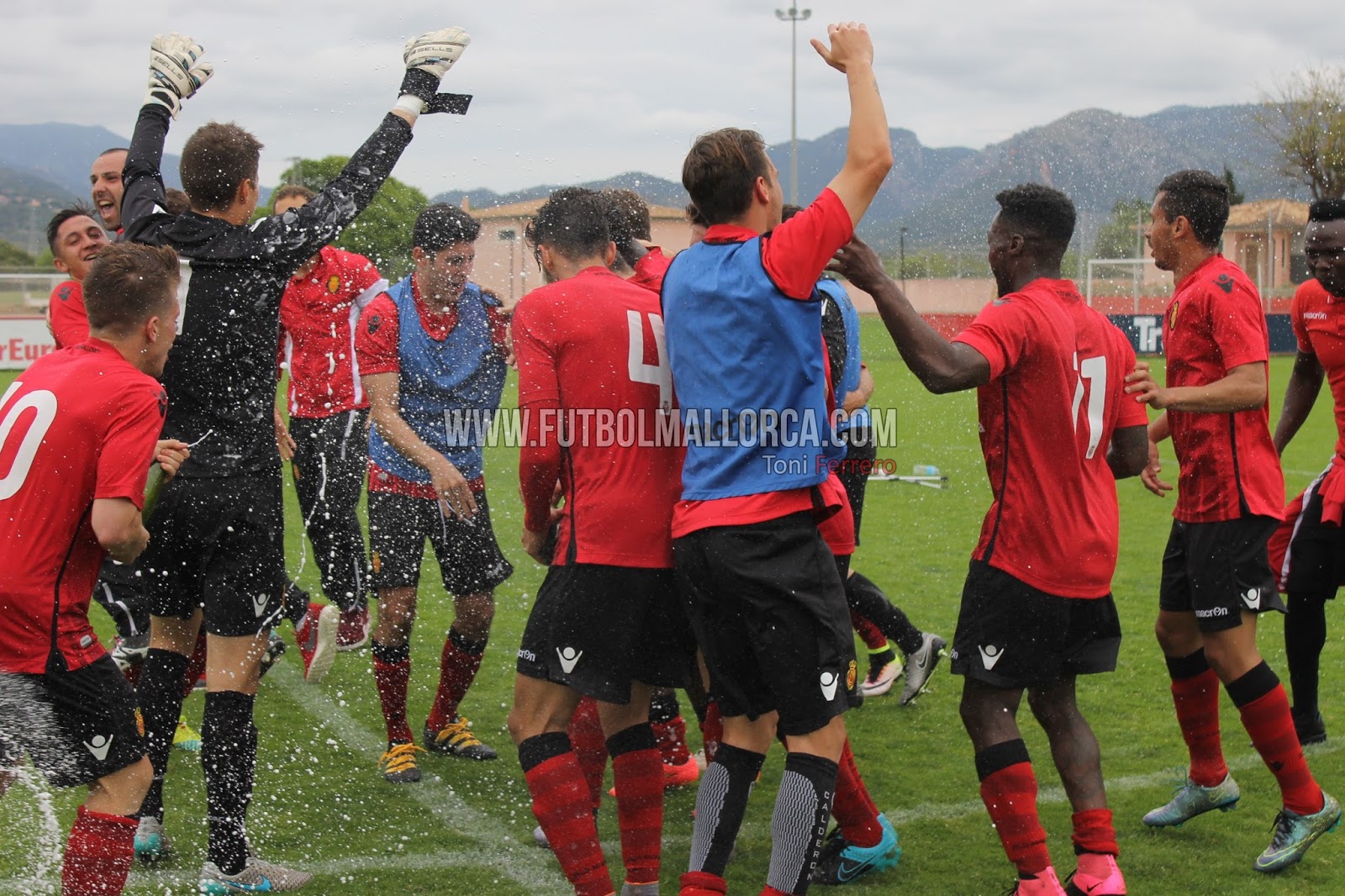 Amplia galería fotógrafia del Mallorca B 2-1 Playas de Calviá jugado esta mañana en Son Bibiloni. Victoria de los bermellones que se han proclamado campeones de Tercera y de paso complican aún más la permanencia al conjunto visitante, dirigido por Tomeu Fullana.