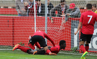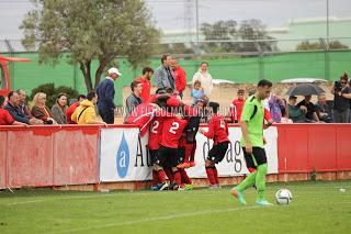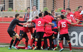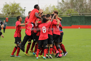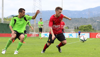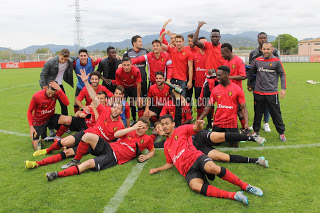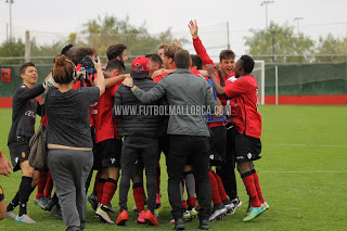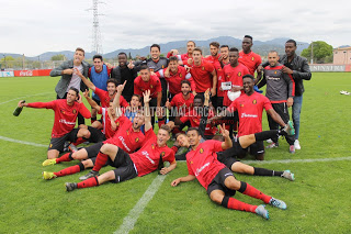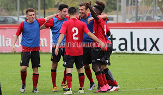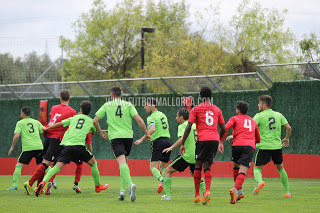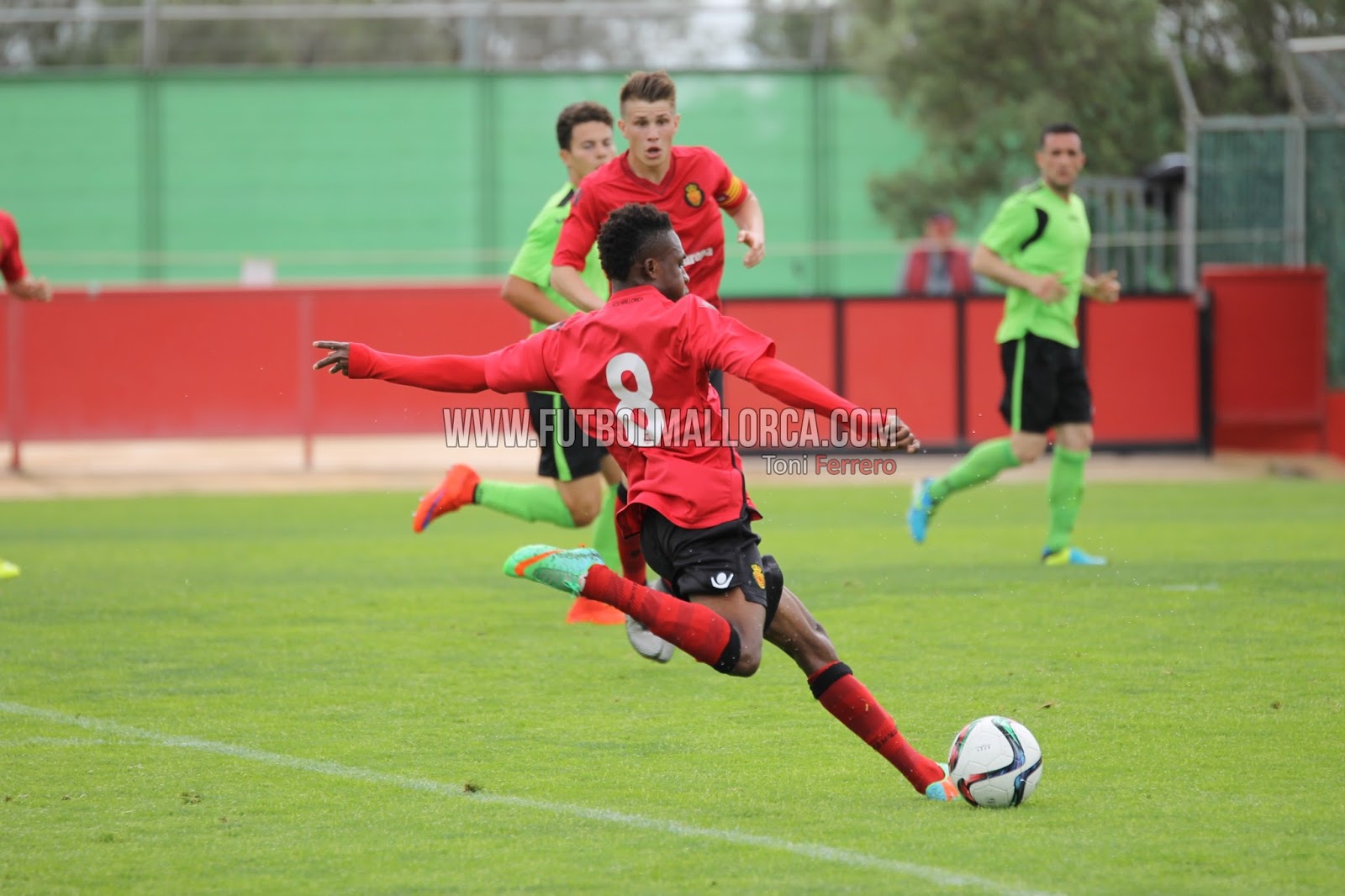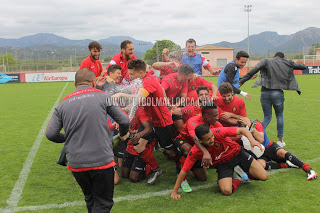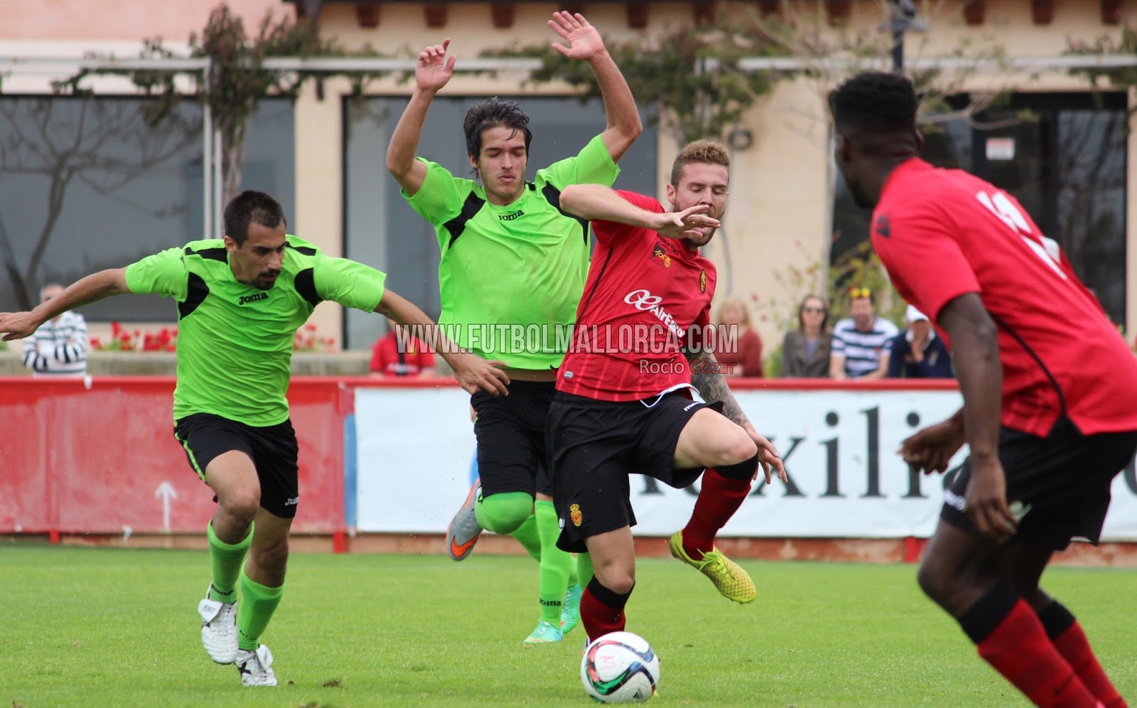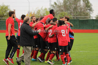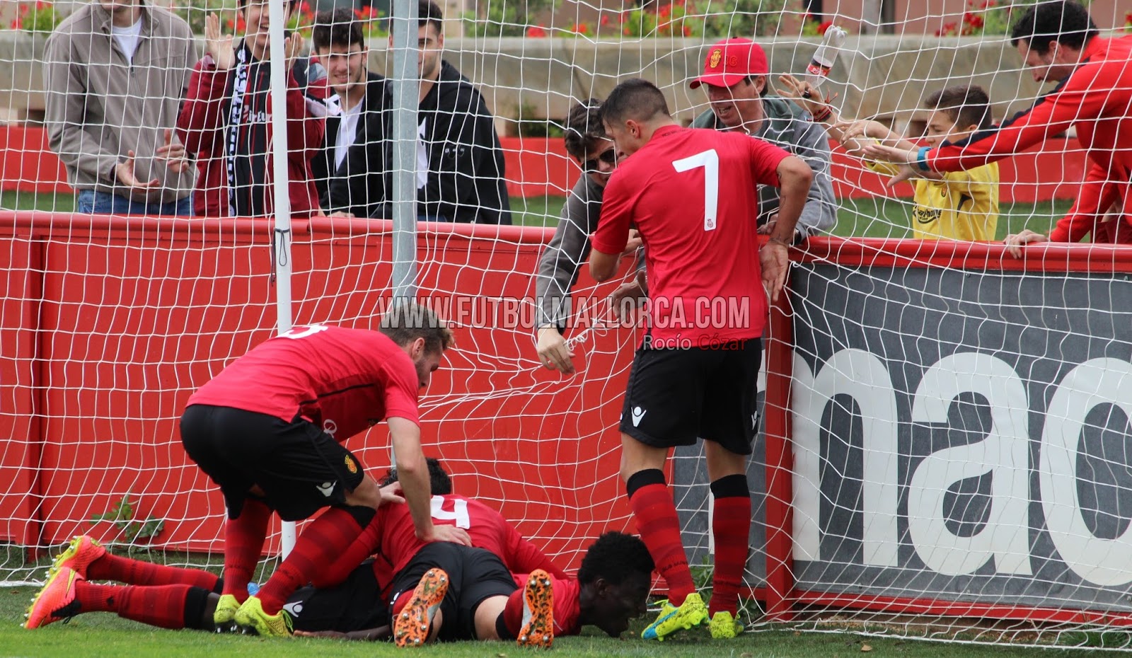 Amplia galería fotógrafia del Mallorca B 2-1 Playas de Calviá jugado esta mañana en Son Bibiloni. Victoria de los bermellones que se han proclamado campeones de Tercera y de paso complican aún más la permanencia al conjunto visitante, dirigido por Tomeu Fullana.