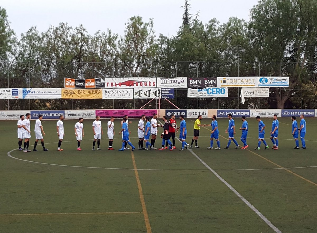 El conjunto de Nico López estuvo más activo que partidos atrás y sobre todo se notó en una mayor fluidez en el juego y una mayor participación de los laterales, más ofensivos que nunca. Pronto se abrió el marcador para los locales ya que con un centro desde la izquierda Joan Salvà se levantaba para rematar un buen balón al fondo de las mallas, a los pocos minutos de partido. Una defensa más sólida con la inclusión de ‘Balta’ Rigo, que hacía su aparición en la plantilla llosetina, provocó que no retrasaran tanto la posición de los centrocampistas; aun así, no formó la pareja de centrales que se prevé habitual en el esquema del técnico inquer, la formada por Pedro Mairata y ‘Balta’ Rigo.