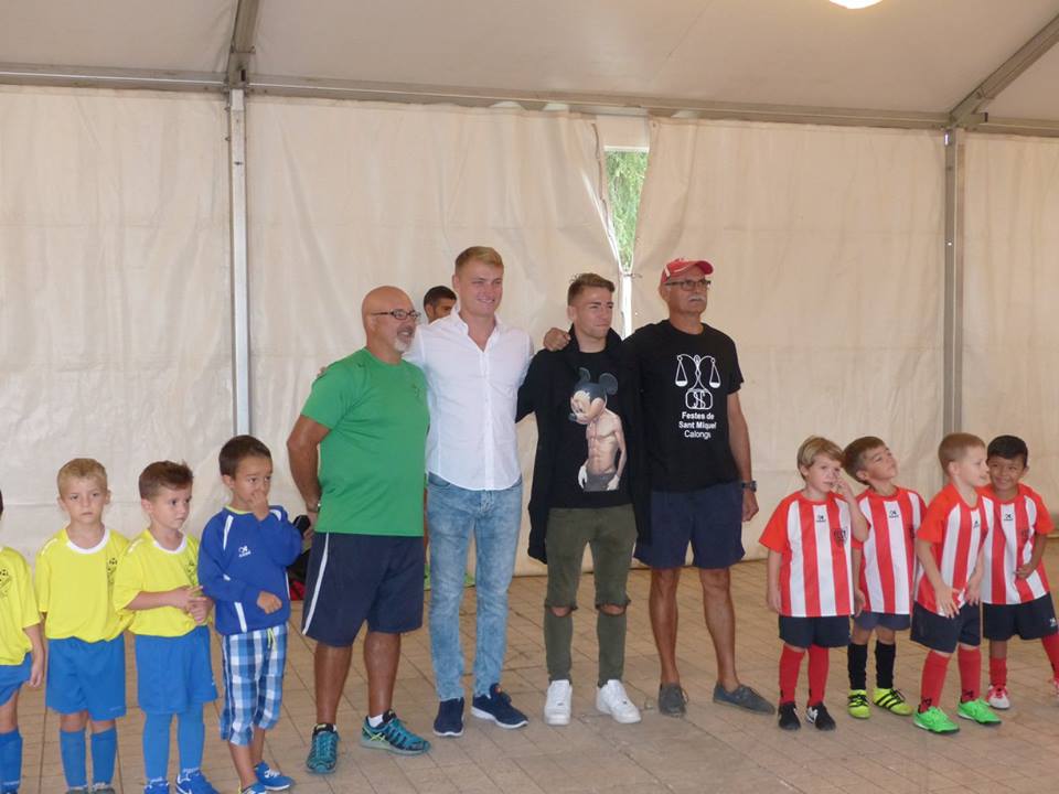 El mal tiempo reinante obligó que el partido entre las escoletas del C.D. Cala d’Or y C.E. Santanyí se disputara en la carpa preparada para realizar el IV coloquio Olímpico. Fue una gran oportunidad para que los niños se pudieran fotografiar con el campeón Olímpico de piraguismo en K1 1000 Marcus Cooper Walz y uno de los iconos del Mallorca, Brandon Thomas. Deportistas que compartieron vestuario en el C.D. Cala d’Or en su etapa alevín.