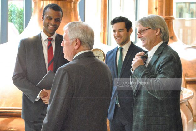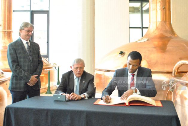 El director general de Estrella Damm, Enric Crous, ha recibido a su llegada a la Antigua Fábrica de Estrella Damm a la comitiva del Mallorca, formada por el presidente Monti Galmés, el CEO del club, Maheta Molango, así como el ex jugador Alfonso Pérez y los jugadores bermellones Eduard Campabadal y Pol Roigé. Tras el recibimiento, Galmes, Molango y Enric Crous han posado para la prensa con un tradicional brindis con unas cervezas de la marca mediterranea.