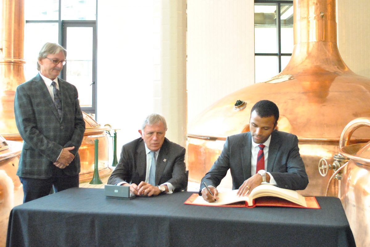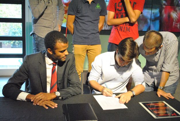 Acto seguido se ha pasado a la firma de la amplicación del acuerdo con la marca cervecera. Dicho acuerdo alarga la ya existente vinculación desde el año 2000 hasta el final de la temporada 2018/2019, siendo así la bebida oficial en el estadio además de estar presente la imagen de la marca.