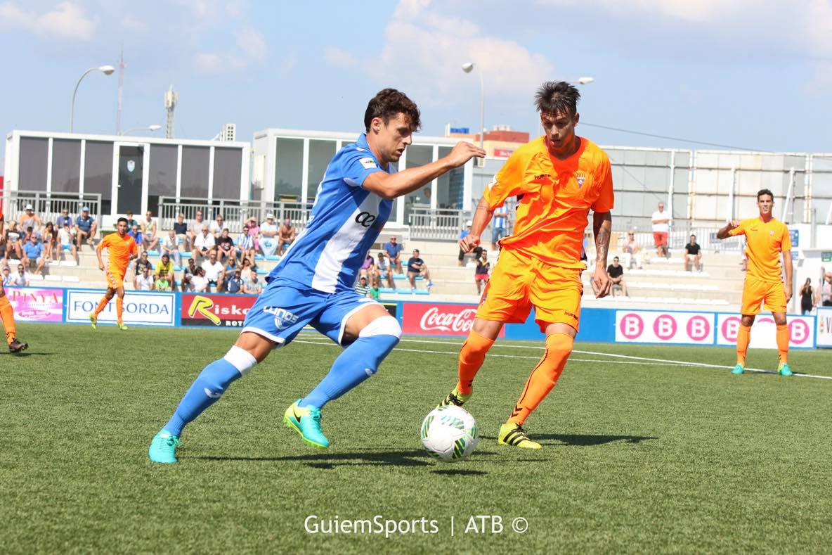 Sascha propinó el primer golpe del partido al Atlético Baleares en el minuto 7 con un buen remate de cabeza ganado la espalda a la defensa blanquiazul. A pesar de comenzar el partido cuesta arriba, el Baleares remó en los siguientes minutos para tratar de igualar el encuentro. Rubén Jurado, primero con un cabezazo y después con la pierna derecha, puso en peligro la portería de Craviotto. Los balearicos se animaron y Fullana gozó de una gran ocasión a los 20′ de partido, aunque su disparo no encontró puerta.