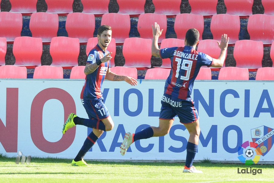 La S.D. Huesca es un competidor vertical, que combina con rapidez y donde destaca el mediapunta Samuel Sáiz, muy técnico, con capacidad asociativa, dinamismo y golpeo notable de cara a portería. Es el máximo goleador actualmente con tres dianas aportadas. Le siguen el mediocentro Juanjo Camacho, con dos goles y baja en esta jornada, y el extremo David Ferreiro, con un tanto en Liga y otro en Copa. A domicilio, los aragoneses vienen de ganar 1-2 al Real Valladolid hace dos jornadas. Encadenan dos triunfos consecutivos, paradójicamente después de una dura derrota en casa frente al Elche C.F. (0-3). Apenas dos semanas antes, la S.D. Huesca ganó 3-0 al Córdoba C.F. en el estadio de El Alcoraz.