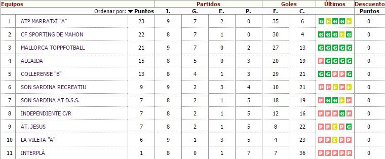 A falta de que se jueguen los restantes 4 partidos correspondientes así queda la clasificación de la Liga Autonómica: