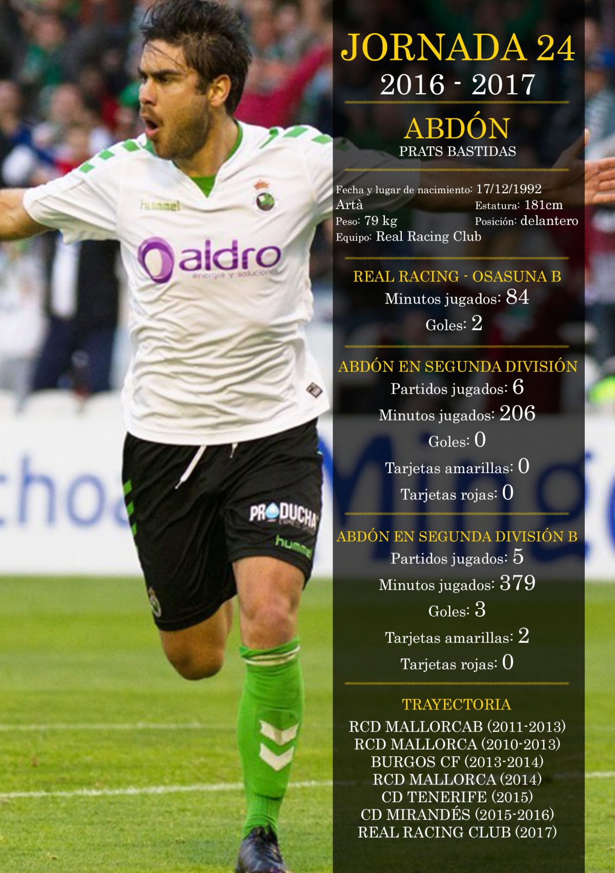 Esta semana no tenemos por más que repetir protagonista en la infografía de la semana. Y es que Abdón Prats está de dulce en su nuevo destino. Los aires cántabros han sentando de lujo al delantero de Artà y esta semana ha firmado un doblete para abrir el marcador en la goleada de su equipo para superar al filial del Osasuna por cuatro goles a uno, partido que además empezaron perdiendo.