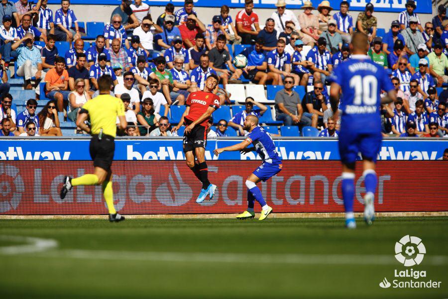 Poco fútbol, mucho miedo. Durante la primera parte ambos equipos fueron más que cautelosos en todos los aspectos del juego. En defensa nadie arriesgó, nadie dominó el juego; en ataque, más de lo mismo. De los primeros cuarenta y cinco minutos solo se puede rescatar un disparo de Ante Budimir que -como no- se estrella en la madera. Fue la más clara de lo que se llevaba de partido y el único disparo entre los tres palos que se vería en la primera mitad. Se vieron muchas dudas por parte de la defensa bermellona. Valjent tuvo momentos de incertidumbre, momentos que junto con las dudas de Reina, casi propiciaron uno de los goles tontos de la temporada. El Alavés no exigió demasiado a un Mallorca que se encontraba cómodo, pero que era incapaz de llevar la batuta del partido. Salva Sevilla no cogió las riendas del centro del campo y eso se notó. Tampoco jugaron mucho con Take Kubo, pero el japonés, cuando gozaba del esférico en sus botas, seguía dando argumentos de la gran calidad que tiene. Las internadas de Lago Junior por la izquierda eran tímidas y solo Febas y Baba daban un poco de garra para evitar situaciones serias de peligro. Aún así, los locales no dispararon entre los tres palos en ningún momento. Solo Joselu, con un disparo alto de volea, dio un pequeño susto al equipo bermellón. Eso sí, en los últimos minutos de la primera mitad, un breve arreón local propició un peligro en el área de Reina que no se transformaría, eso sí, en ocasiones manifiestas de gol.