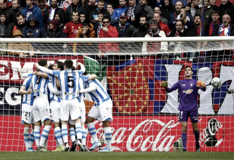 Atlético y Real Sociedad también solventaron sus choques con mucho sufrimiento. Los de Simeone tuvieron que esperar hasta la segunda mitad para ponerse por delante con dos goles de Correa y Morata aunque ya en el descuento encajaron el gol bético. Parece que el cuadro madrileño ha mejorado en estos últimos partidos y que poco a poco comienza a ser el equipo que se espera. El Betis volvió a su irregularidad habitual de los primeros meses. Fue inferior y su derrota resultó más que justa. Donde se vivió un auténtico partidazo fue en El Sadar pamplonica, estadio en el que la Real Sociedad logró un nuevo triunfo a domicilio gracias sobre todo a su espléndida primera mitad, en la que se colocó con tres goles de ventaja en menos de media hora. Una vez más, Odegaard y Oyarzábal fueron un quebradero de cabeza para los defensas navarros. Pero la confianza donostiarra se tornó en preocupación porque justo antes del descanso y nada más comenzar la segunda mitad Osasuna marcó dos goles que constreñían el marcador con muchos minutos por delante. La expulsión de Roncaglia y el cuarto gol realista destrozaron finalmente al cuadro de Arrasate, que incluso obtuvieron el tercero tras jugada individual del Chimy Ávila. Pero hasta ahí. La Real consiguió el balón en los últimos minutos y no permitió más a su rival, llevándose los tres puntos de un campo complicado que le mantienen a sólo un punto de puestos Champions.