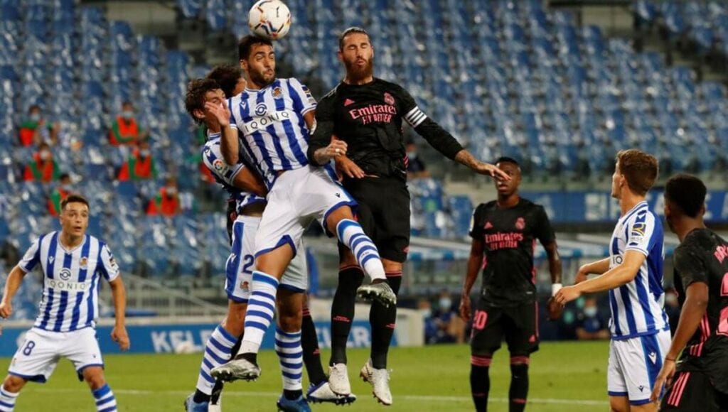 Fue el único empate de la jornada y no vimos goles. Anoche, en el Reale Arena, la Real Sociedad y el Real Madrid igualaron en esfuerzo; en fútbol, poco, y ocasiones, más bien escasas. Zidane sorprendió de inicio con la entrada en el once titular de Odegaard por un frontón como Casemiro. Su intención era doble: por una parte, dar una oportunidad al noruego en un estadio que fue suyo hace meses y frente a sus antiguos compañeros. Por otro, buscaba el enlace con Benzema, el toque de ruptura, y el control del esférico para evitar la salida de balón de los donostiarras. En la primera media hora el plan funcionó según lo previsto. Sólo faltó un poco de profundidad y el gol. La Real no podía salir casi de su parcela, Remiro cometió dos errores en los lanzamientos largos que a punto estuvieron de costarle un disgusto y los de Imanol eran incapaces de dar tres pases seguidos sin perder el balón. Cuando ya se vislumbraba el descanso llegó la ocasión más clara del choque en ese período, pero fue favorable a la Real. Isak se quedó sólo en el lateral del área frente a Courtois, pero el belga salió rápido y se agigantó para rechazar el remate. La Real asustó y el Madrid tembló ligeramente para llegar en igualdad al descanso.