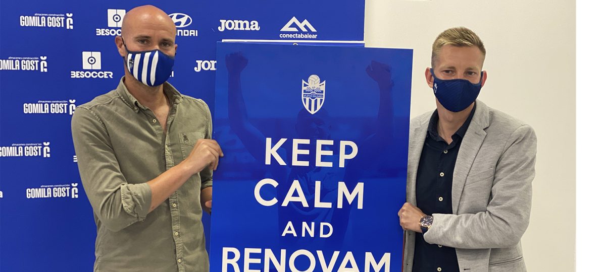 Con el objetivo cumplido tras lograr una plaza a la Primera RFEF, el Atlético Baleares ya planifica la temporada 2021/2021. Y su primer piedra es la renovación del técnico Xavi Calm. El míster catalán, que debutó en el banquillo balear a mediados de marzo, ha cosechado 6 victorias, un empate y tan solo una derrota, convirtiéndose en el mejor entrenador del Atlético Baleares en toda su historia desde que un técnico coge el equipo en puntos obtenidos en un arranque sea de inicio de liga o a mitad de la misma. El entrenador seguirá un año más vinculado al club, hasta junio de 2022 y este mediodía en la sala de prensa del Estadio Balear ha acudido junto al director deportivo, Patrick Messow, para atender a los medios de comunicación y hablar sobre la renovación.