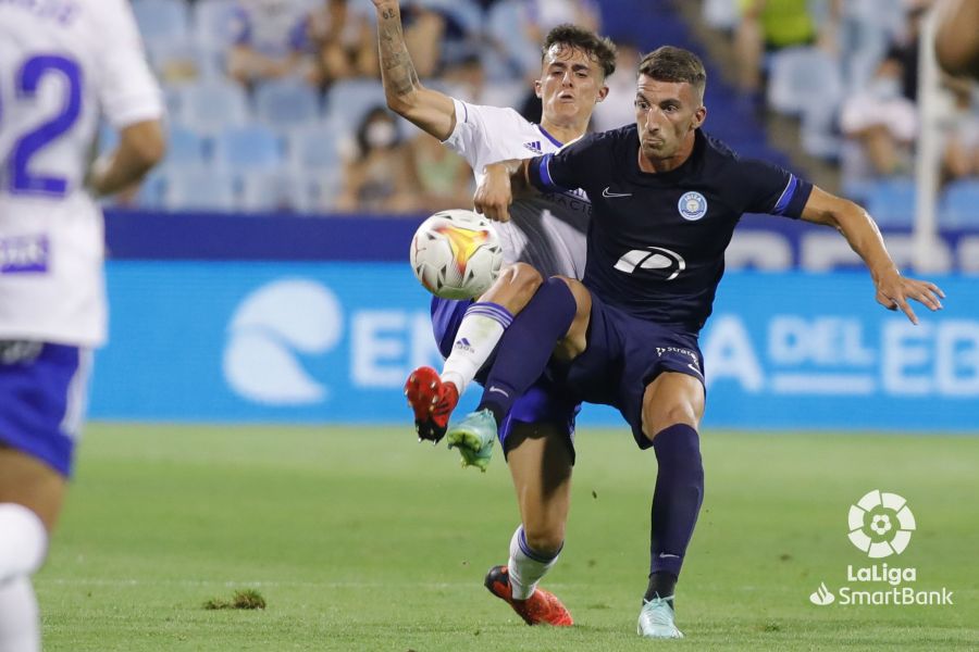 Los aragoneses salieron mejor, pero el dominio del juego no les duró mucho y poco a poco el conjunto de Carcedo fue creando peligro a la portería de Cristian Álvarez. Bermejo lo intentó con un lanzamiento de falta que golpeó en la barrera y Fran Grima probó a Cristian con un disparo flojo. Los ibicencos se adueñaron del balón y la afición local se empezó a impacientar. Lo visto en pretemporada dio esperanzas pero, al final, el equipo era el mismo del pasado curso con la única novedad de Fran Gámez.
