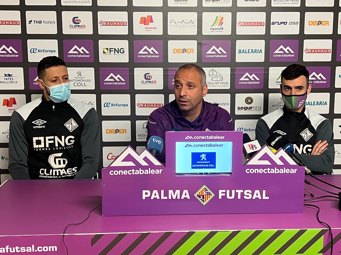 El entrenador del Palma Futsal valoró junto a Eloy Rojas y Cainan el próximo partido liguero del cuadro balear, que recibe a Jimbee Cartagena este sábado a partir de las 12:00 horas. Los de Vadillo llegan al choque en un gran momento de forma y el mismo técnico afirma que “tengo la sensación de que si estamos bien y concentrados siempre vamos a competir a nuestro máximo nivel y cuando competimos a nuestro máximo nivel somos muy difíciles de batir. Mañana vamos a salir a ganar, pero si se pierde no pasa nada, es la realidad, tendremos que ganar fuera de casa y otros partidos”. Con una racha de diez partidos consecutivos sin conocer la derrota en la liga, Vadillo declara que “el equipo ha dado un paso al frente a nivel de mentalidad brutal y nos transmite muchísima confianza. Después el partido hay que jugarlo, pero nos transmite que tenemos esa mentalidad ganadora y de saber que cada partido requiere un guión y a partir de ahí escogemos el mejor guión para sacar los tres puntos”. El jerezano es consciente de la importancia del partido ante el conjunto murciano, aunque asume que “es la liga regular y se tiene que medir después de los treinta partidos, pero somos conscientes que si mañana somos capaces de ganar vamos a dar un salto muy importante porque nos distanciaríamos en la clasificación, sacaríamos bastantes puntos a nuestros perseguidores y eso en una lucha por estar ahí arriba nos vendría bastante bien”. Enfrente tendrán a un equipo que actualmente ocupa la cuarta plaza y que Vadillo declara que “va a ser una batalla muy dura porque el rival que viene sabe muy bien lo que tiene entre manos, sabe muy bien a lo que juega, nos va a regalar muy poco y nos va a exigir estar a nuestro máximo nivel”.