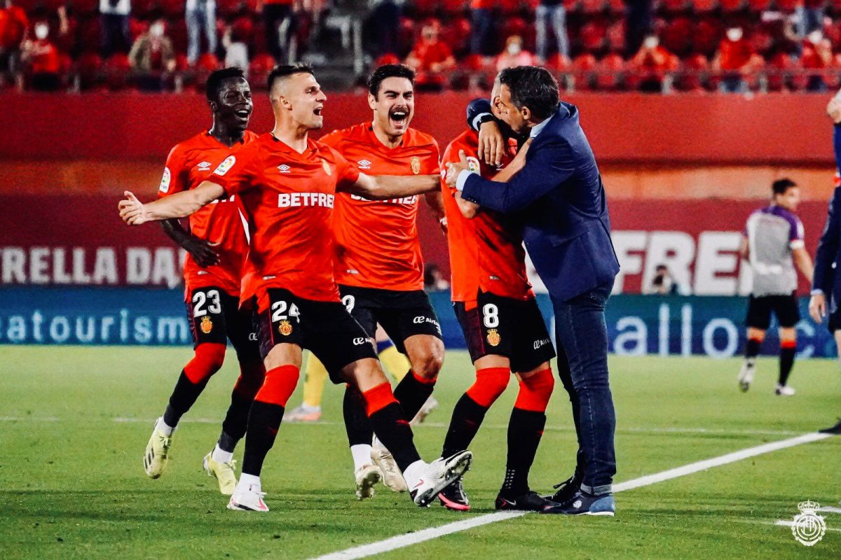 Salva Sevilla y Luis García Plaza, celebrando un gol en Son Moix. Foto: RCD Mallorca.