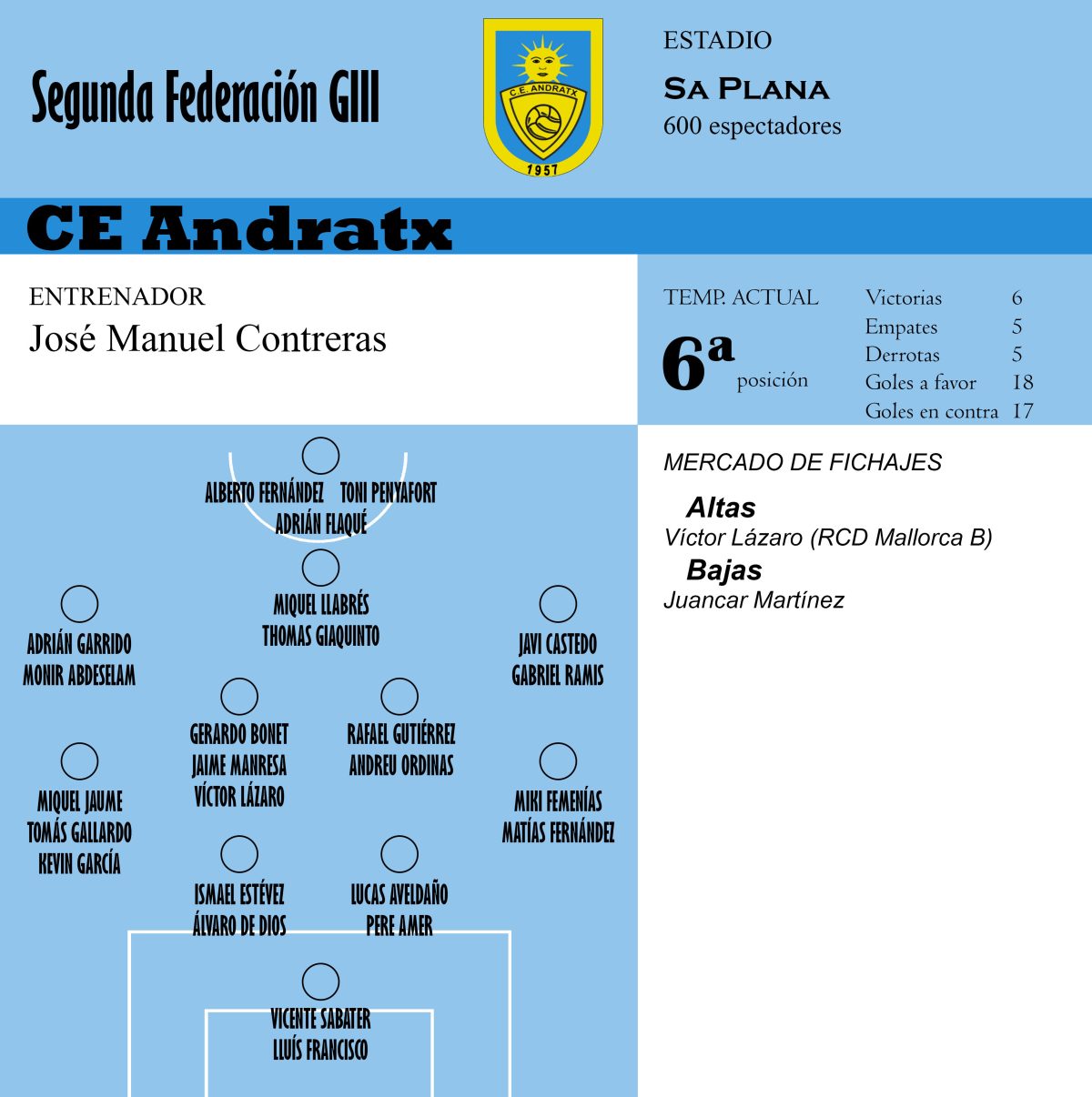 Víctor Lázaro es el primer fichaje en este mercado invernal para el Andratx. El mediocentro de corte más ofensivo viene en calidad de cedido por parte del Mallorca. De 19 años y natural de Palma, el jugador debutó la temporada pasada en Segunda Federación con el filial bermellón disputando un total de catorce partidos. Lázaro continuaba en la disciplina mallorquinista, en la que lleva ya años, y esta temporada en Tercera Federación. Trece partidos lleva disputados en los que ha anotado un tanto.