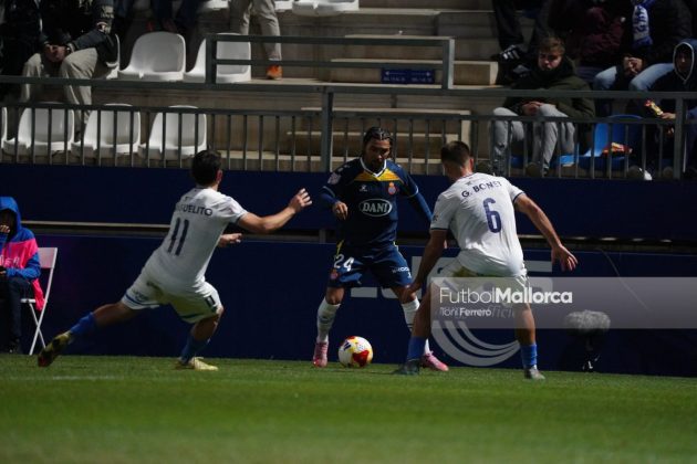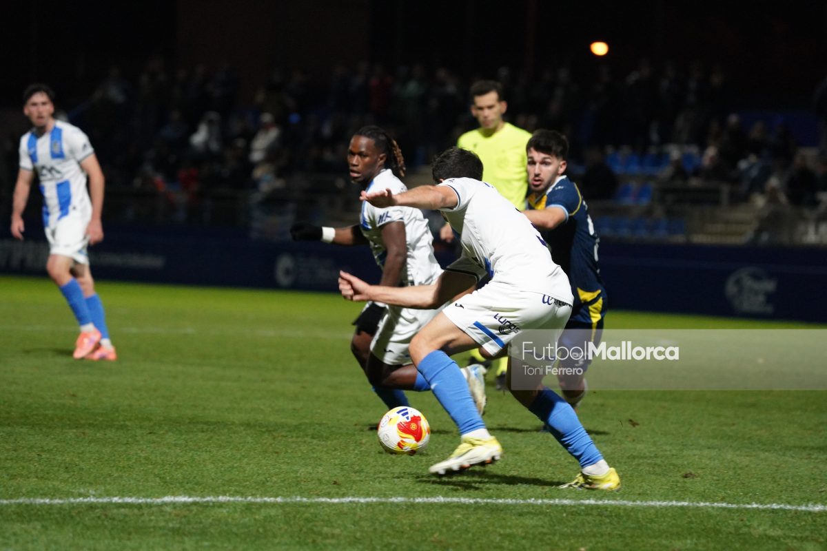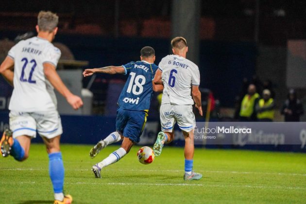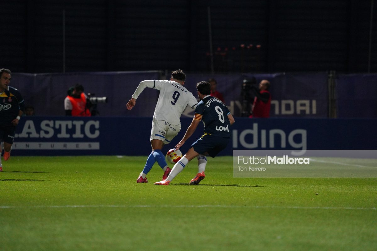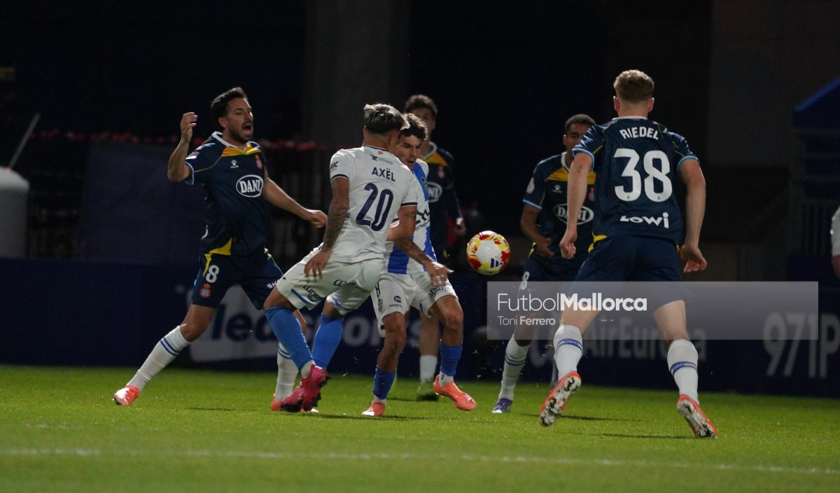En una acción más propia de otro fútbol, Bejarano puso un centro al corazón del área donde Riedel no acertó al despejar, dándole con su brazo izquierdo, y el balón muerto en el área pequeña lo remató Tovar, que desató la euforia del Estadi Balear ante un Fortuño vendido por el error de su compañero. La reacción de los pericos no tardó en llegar, aunque fue más por voluntad que por fútbol ante las complicaciones para encontrar sus oportunidades a pesar de la entrada de varios titulares como Roberto Fernández, Dolan o Urko González.