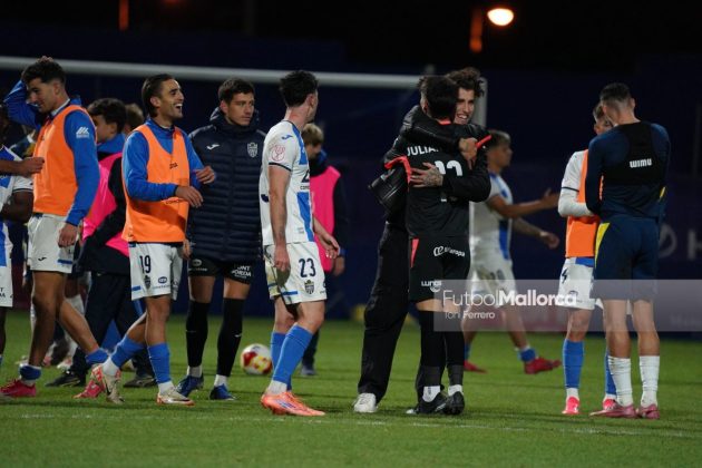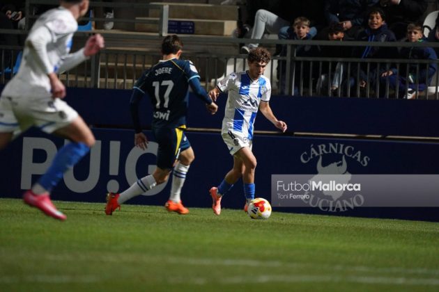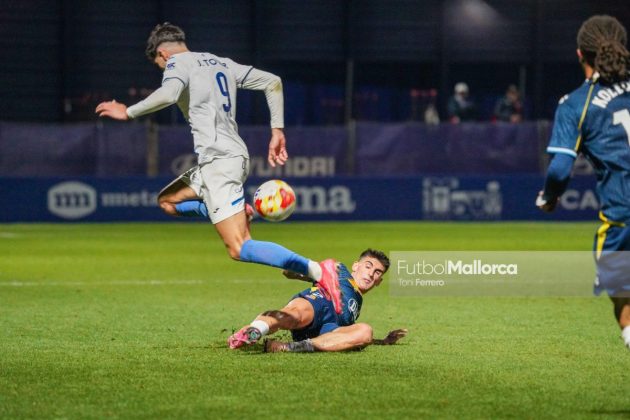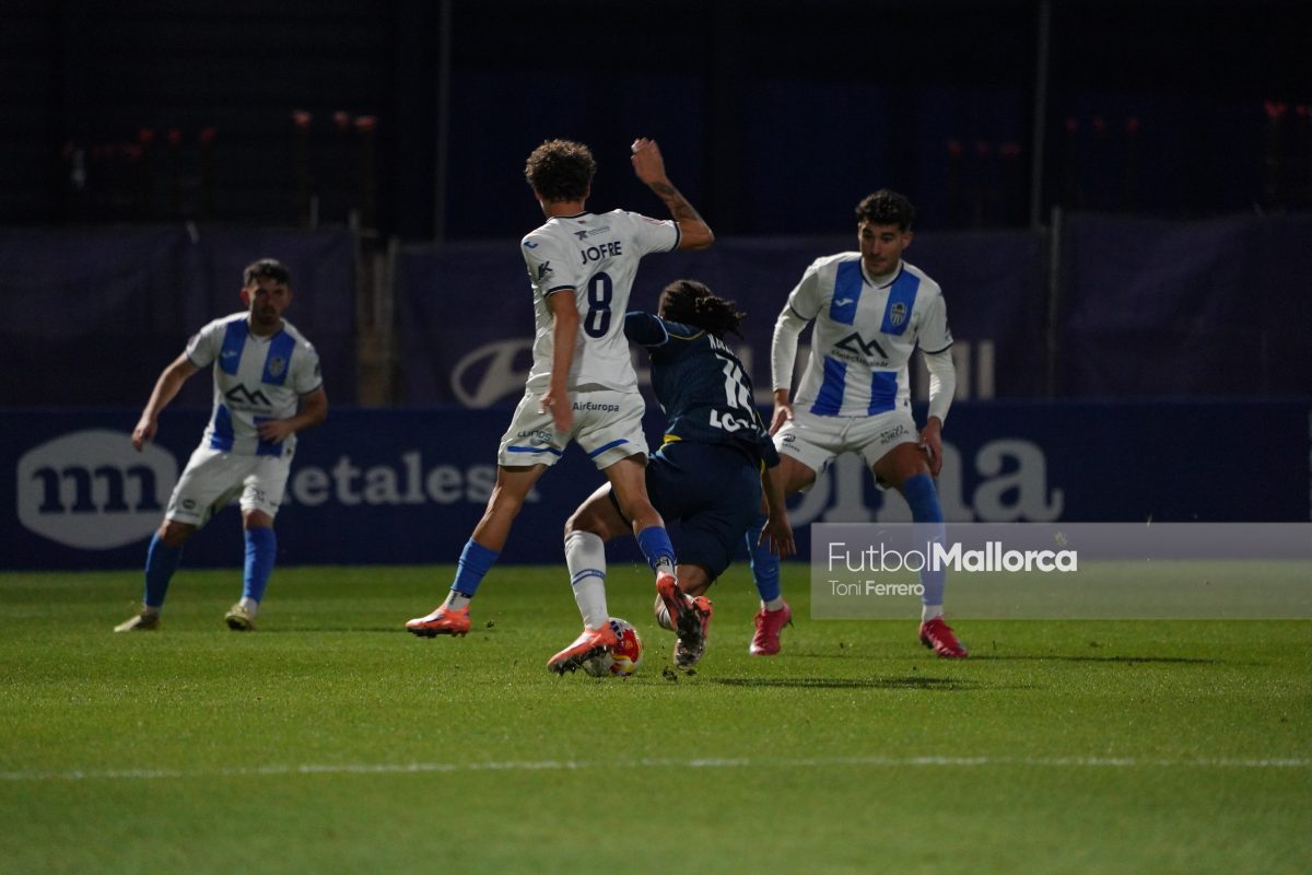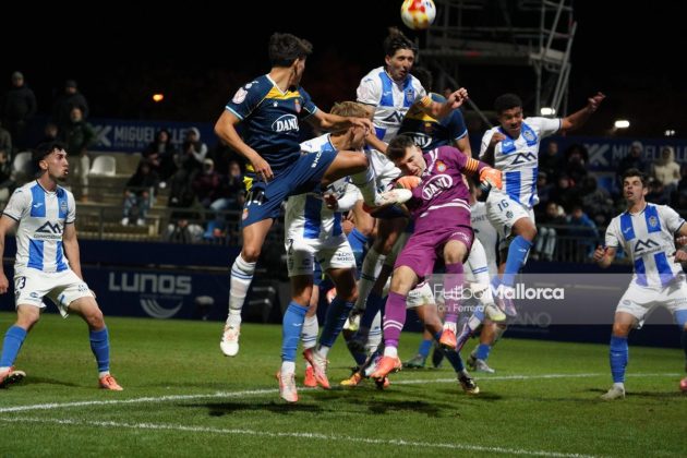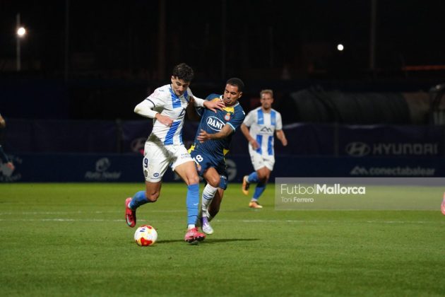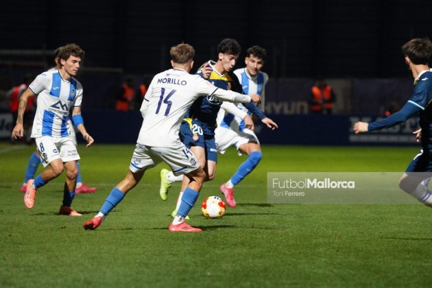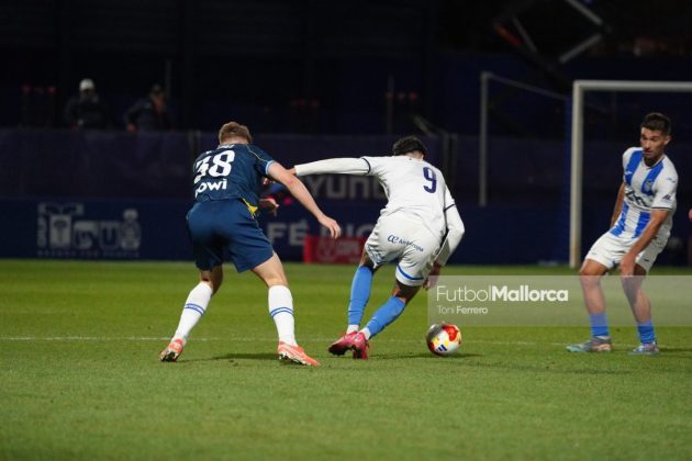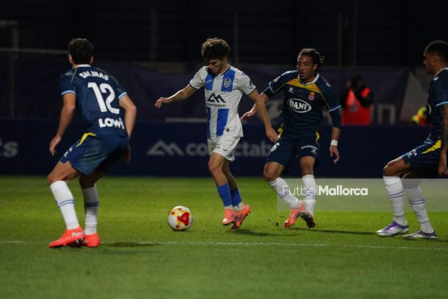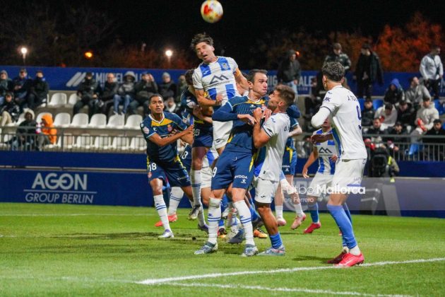 En una acción más propia de otro fútbol, Bejarano puso un centro al corazón del área donde Riedel no acertó al despejar, dándole con su brazo izquierdo, y el balón muerto en el área pequeña lo remató Tovar, que desató la euforia del Estadi Balear ante un Fortuño vendido por el error de su compañero. La reacción de los pericos no tardó en llegar, aunque fue más por voluntad que por fútbol ante las complicaciones para encontrar sus oportunidades a pesar de la entrada de varios titulares como Roberto Fernández, Dolan o Urko González.