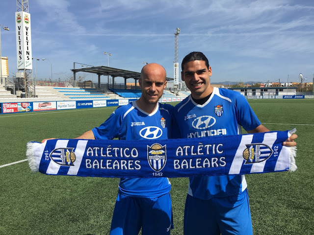 Casares y Jurado posan con una bufanda del Atlético Baleares / Foto: Atlético Baleares