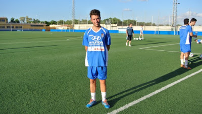 El talentoso mediapunta vesa el escudo del Sant Jordi tras marcar un gol la pasada temporada (Foto: Francisco Natera).