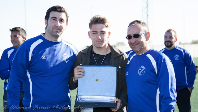Brandon posa junto a los que fueran sus entrenadores en su etapa con el CD Cala D'or / Foto: Frincu Octavian