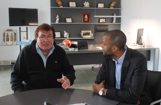 Miquel Bestard (presidente de la FFIB) y Maheta Molango durante la reunión que han mantenido / Foto: RCD Mallorca