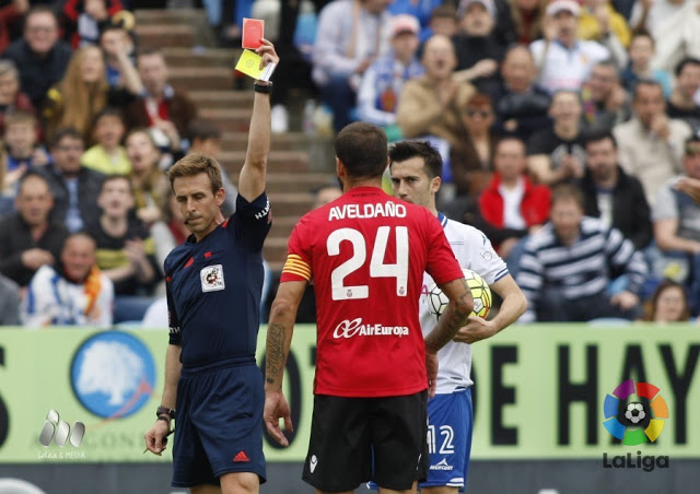 Aveldaño en el momento de su expulsión ante el Real Zaragoza / Foto: LaLiga